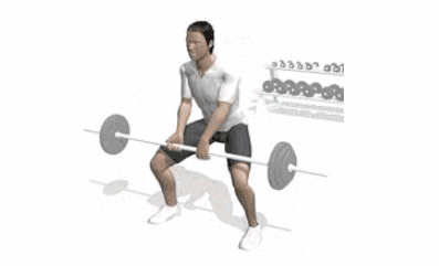 动作要领:深深吸气,使各部分肌肉保持紧张,拉起重物,髋部前移,开始拉起重物,双脚用力蹬地,然后使髋部前移。双脚继续蹬地,直到双腿完全伸直,直至你到达锁定位置。放下重物时应该和提拉时一样认真,因为很多人都是因为放下重物的动作不标准而受伤的。反向重复提拉过程,安全地放下重物。背部保持平直,铃杆靠近身体。