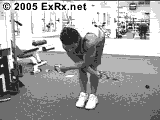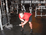 1.俯身身体接近水平位置,两脚分开站立同肩宽,两手掌心相对握住拉力器把柄,上体向前屈体至与地面平行,两腿稍屈,使下背部没有拉紧感。