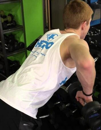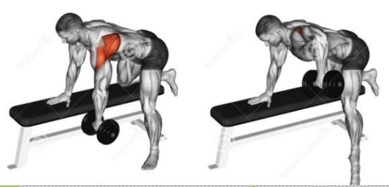 比如我们最常见的哑铃划船(手臂靠近身体)主要是肩部伸展的动作!虽然肩伸时三角肌后束有参与,但是主导者是背阔肌!