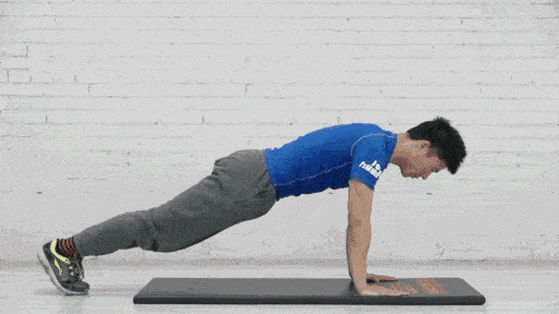 俯身地面,双手支撑身体,向下时大臂夹紧,平行于地面,向上时大臂发力,双手伸直,注意大臂向身体贴紧。