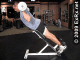 (3)俯卧在罗马椅上,上体前屈,两足固定,两手抱头或肩负杠铃。
