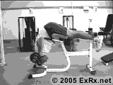 4.山羊挺身这个动作练习腰部强度一般不会很大,如果想增加锻炼强度,可以抱一杠铃片在胸前,或者肩部杠着杠铃: