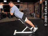 背屈伸(Hyperextension)也称山羊挺身,它是初学者和女士在健身房练习腰部力量的最佳选择,这一动作动作徒手做的情况下,负荷比较小,腰部不容易受伤。当然,你也可以通过负重来增加锻炼强度。