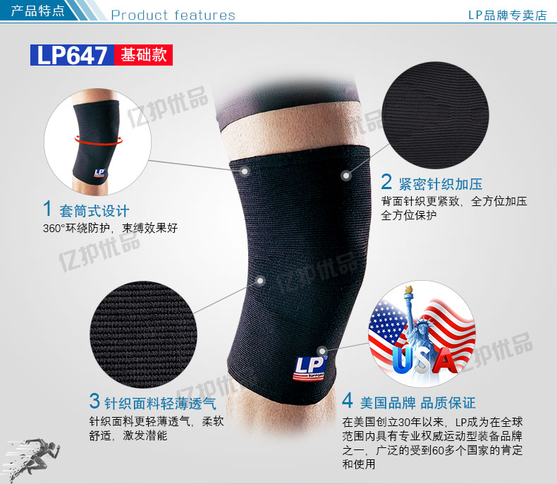 名称:LP647跑步登山骑行篮球户外徒步瑜伽透气男女护膝