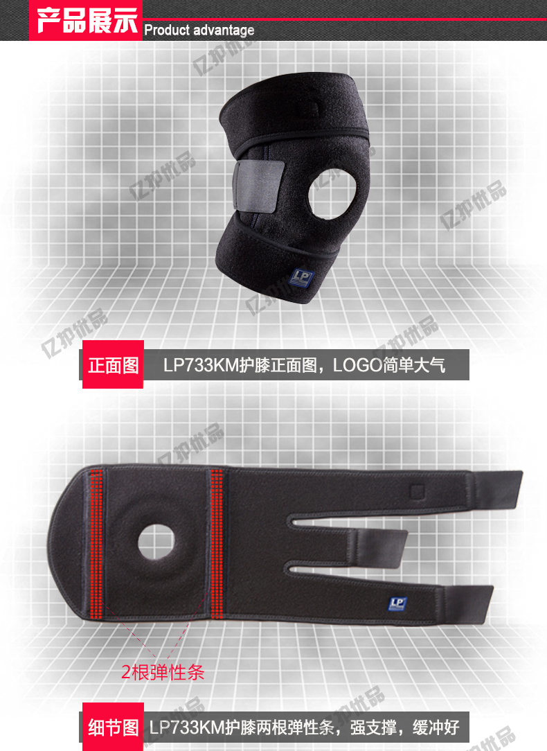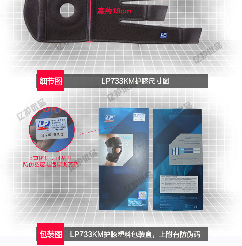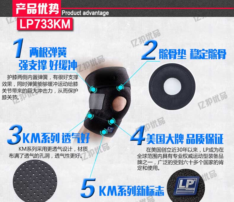 上市时间: 2015年春季 品牌: LP 是否商场同款: 是 颜色分类: 弹簧支撑型 升级版弹簧支撑型 货号: 733KM 护具种类: 护膝 运动户外项目: 网球 足球 篮球 棒球 高尔夫 壁球 保龄球 自行车 轮滑 橄榄球 排球 器械健身 武术 尺码: 均码 单只装 加大码 单只装