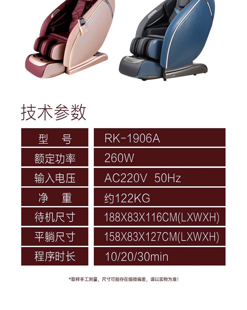 名称:荣康按摩椅 RK1906A