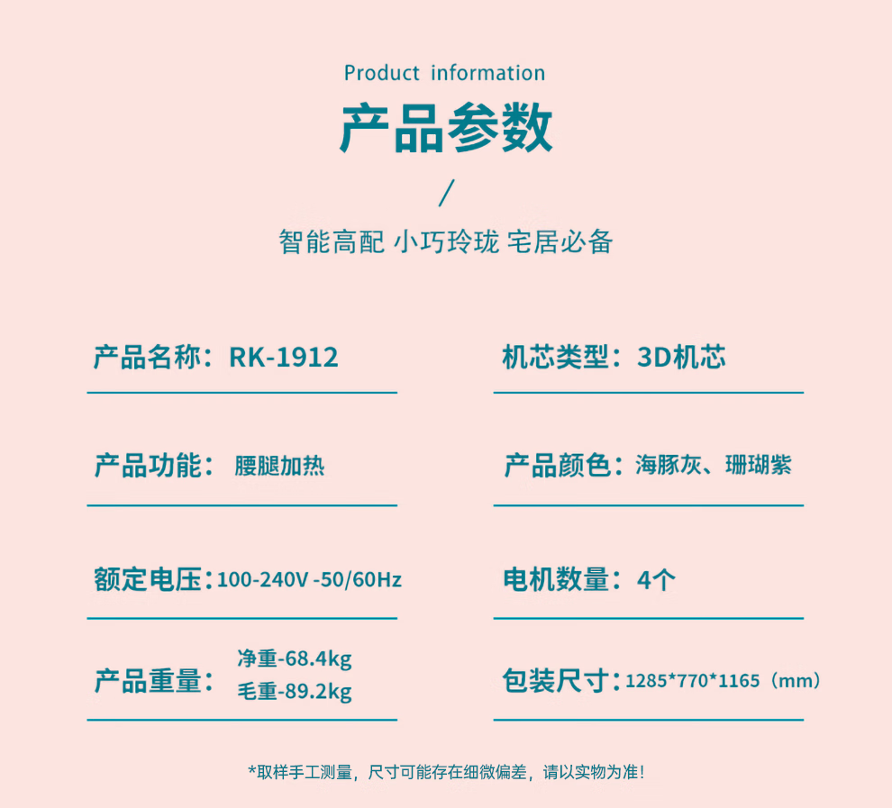 名称:荣康按摩椅 RK1912