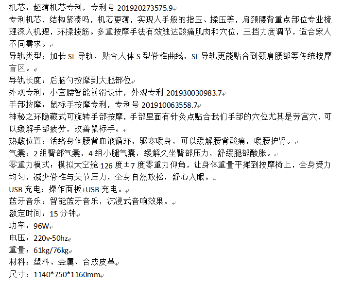 名称:荣康按摩椅 RK1911