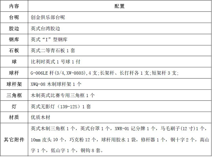 名称:STAR星牌XW105-12S英式斯诺克台球桌