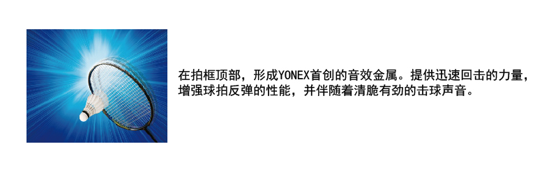 轻量设计,方形拍头,更易操控。 产地:日本 商品代码:轻量设计,方形拍头,更易操控。 球拍规格:4U (约83克) G4,5 拍杆韧度:硬 拍框材质:高弹性碳素;音效金属 拍杆材质:X链富勒烯纳米碳素;高弹性碳素 长度:10mm加长 建议磅数:4U19-24磅